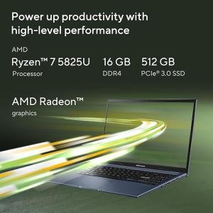 ASUS Vivobook 15, Smartchoice, AMD Ryzen 7 5825U, 16GB RAM, 512GB SSD, FHD 15.6", Windows 11, Office Home 2024, Quiet Blue, 1.7Kg, M1502YA-BQ703WS, AMD Radeon iGPU, M365 Basic (1Year)*, 42Whr Laptop