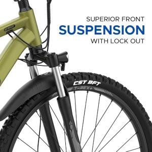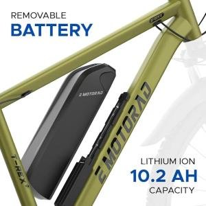 E MOTORAD - Ride The Electric Revolution TRex+ Electric Cycle|18 Inch Aluminiun Alloy 6061 Frame | 250W Rear Hub Motor | Front Suspension | 7 Speed Shimano Altus Gears (Olive Fade, 27.5" Wheel)