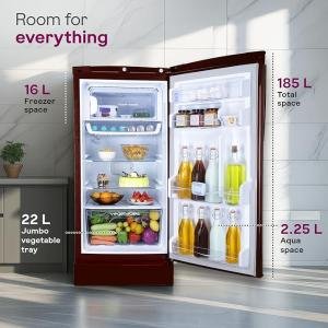 Godrej 185 L 5 Star | Turbo Cooling Technology | Toughened Glass Shelves | Large Shelve Space | Jumbo Vegetable Tray | Direct Cool Single Door Refrigerator (2025 Model, RD 195E TAF MY WN, Mystic Wine)