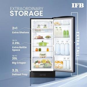 IFB Smart Choice 197L 5 Star Direct-Cool Single Door Refrigerator with Advanced Inverter Compressor (IFBDC-2235DBMED,Mystic Bloosom Blue) Extraordinary Storage with Humidity Controller, Base drawer