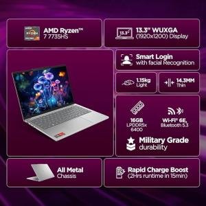 Lenovo IdeaPad Slim 5 Ryzen 7 7735HS (16GB RAM/512GB SSD/Integrated AMD Radeon 680M Graphics/WUXGA IPS Display/13.3" (33.7cm)/Windows 11/Office Home 2024/Backlit KB/Grey/1.15Kg), 83J2000HIN Laptop