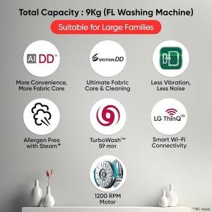 LG 9 Kg, 5 Star, AI Direct Drive Technology, Wi-Fi, Steam+ with Wrinkle Care, Fully Automatic Front-Loading Washing Machine (FHP1209Z7P, Intelligent & Convenient Fabric Care, Allergy Care, Platinum)