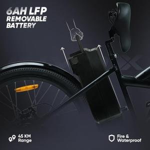 Motovolt Kivo X Limited Edition Electric Cycle | 36V 250W BLDC Motor | 45KM Range | 6Ah Removable LFP Battery | Front Suspension | 26” Tyres | Black