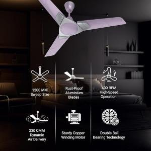 Polycab Aereo Plus Star Rated, 1200mm Ceiling Fan For Home | High Speed & Air Delivery | Saves Up To 33% Electricity, 100% Copper, Rust-Proof Blades, 52 Watt | 3-yr Warranty【Lilac Silver】