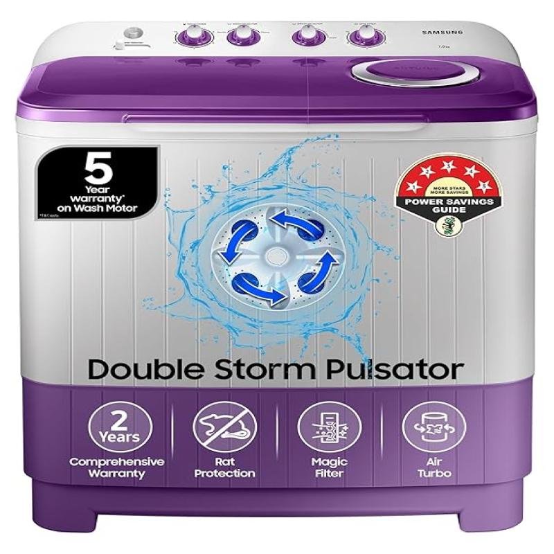 Samsung 7 kg, 5 star, Semi Automatic Top Load Washing Machine (WT70M3000UU/TL, Air Turbo Drying, LIGHT GRAY, 5 Year Warranty on Wash Motor)
