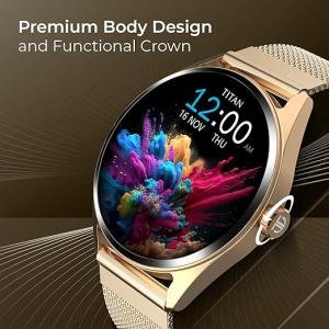 Titan Crest 1.43” AMOLED Smart Watch for Productivity with BT Calling, AI Morning Briefs, Functional Crown, Health Tracking, Aluminium Body, 100+ Sports Modes, Smartwatch for Men and Women - (Brown)