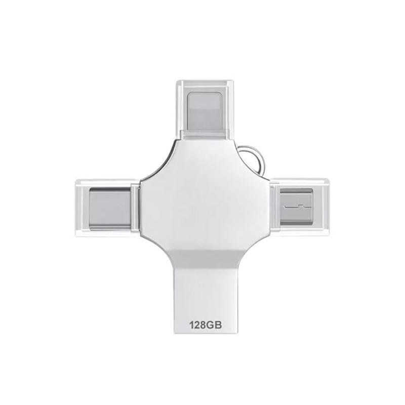 Verilux® Pendrive 128GB 4 in 1 Type C Pendrive with Light-ning, Micro USB, USB A, Type-C Interface Mini Hangable PenDrive for iOS & Android Compatible with iPhone, iPad, Android, PC